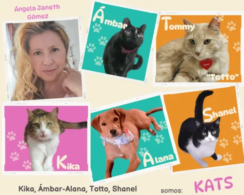 El nombre de KATS es la sigla de “Mis Peluditos”, qué sin saberlo al darle los nombres, (porque llegaron en diferente momento de mi vida); formaron la palabra KATS: